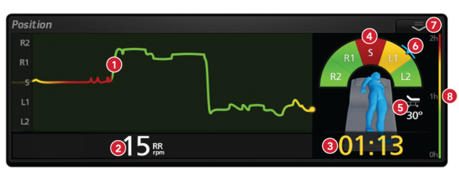 Centroid dient zur Überwachung und Nachverfolgung der Patientenposition und -aktivität, was es Versorgungsteams ermöglicht, das Risiko von Gewebebelastungen einzuschätzen und Protokolle zur Patientenlagerung einzuhalten.