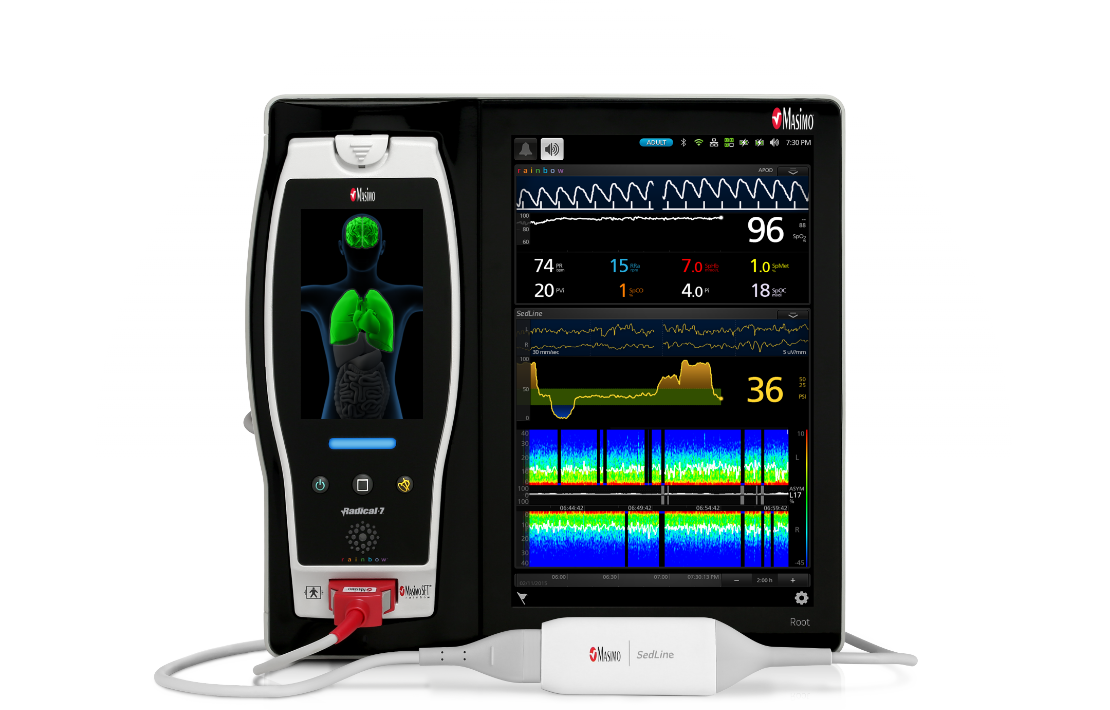 Über Root kann SedLine simultan mit O3 Regional-Oximetrie, Gesamthämoglobinmessungen (SpHb®) und dem Masimo LiDCO® Hämodynamik-Monitoring-System verwendet werden.